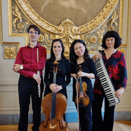 Avec Xin Guérinet (violoniste de l'ONL), Ana Giurgiu (pianiste), Morgane de Lafforest (violoncelliste de l'ONL) et Máté Bán (flûtiste, lauréat des concours internationaux