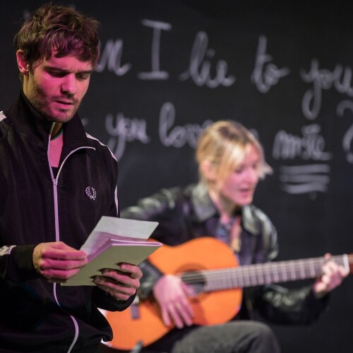 -- Une pièce de Robert Alan Evans / Sur une idée d’Arnaud Anckaert et Robert Alan Evans / Traduction Séverine Magois Mise en scène et scénographie : Arnaud Anckaert / Avec Leïla Muse et Antoine Ferron / Lumières : Daniel Levy / Musique : Benjamin Delvalle, avec Maxence Vandevelde / Costumes : Alexandra Charles / Direction technique : Christophe Durieux / Construction : Thomas Ramon / Photos : Frédéric Iovino